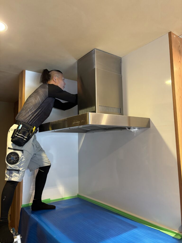 併せて換気扇も、油受け金具が外れてしまっていたことから