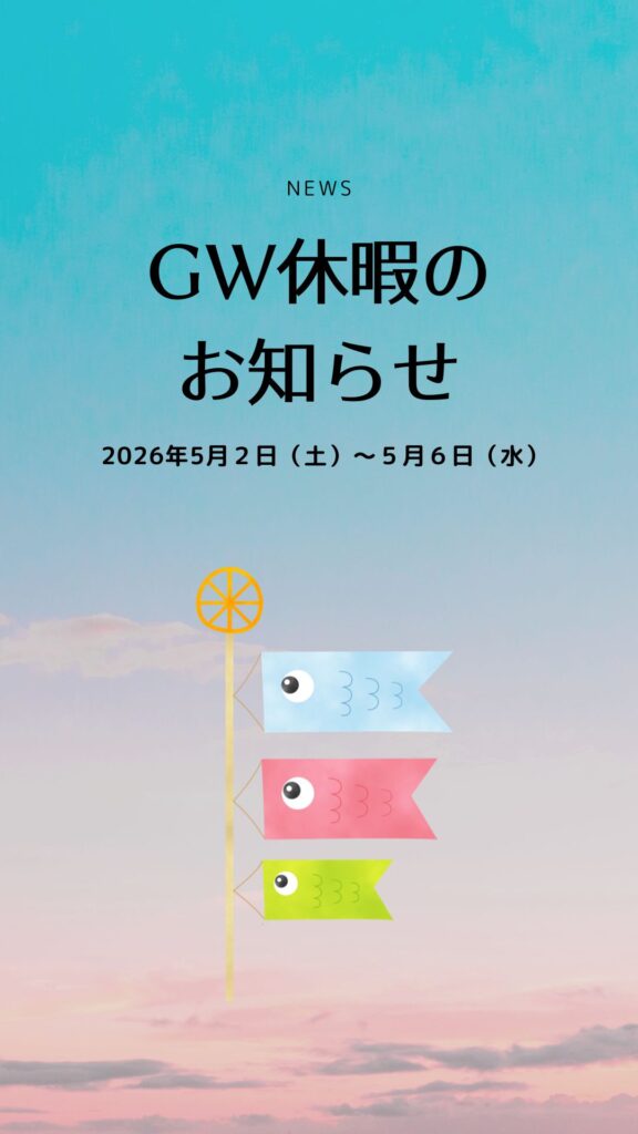 休業期間:2026年5月2日(土)〜5月6日(水)