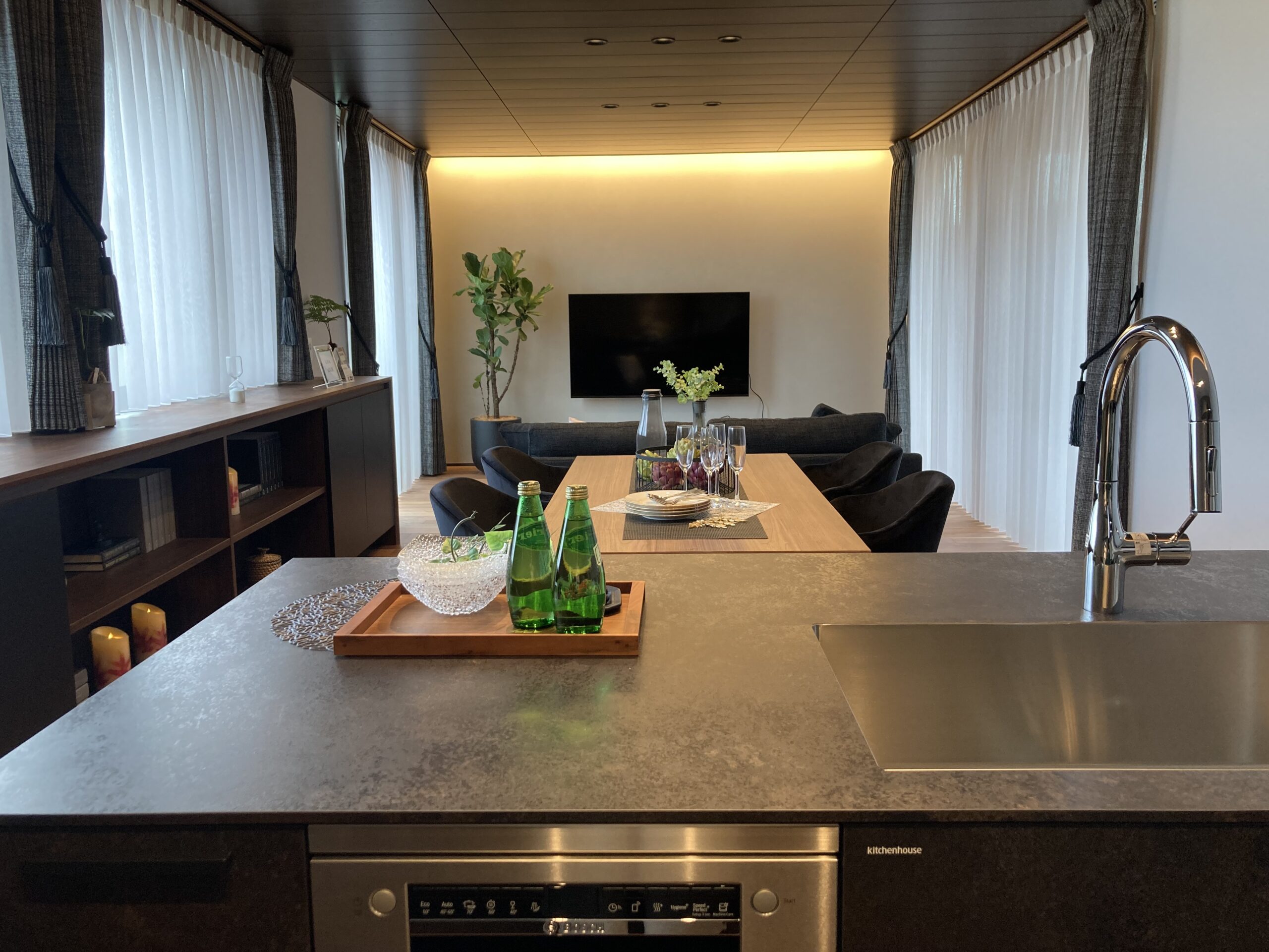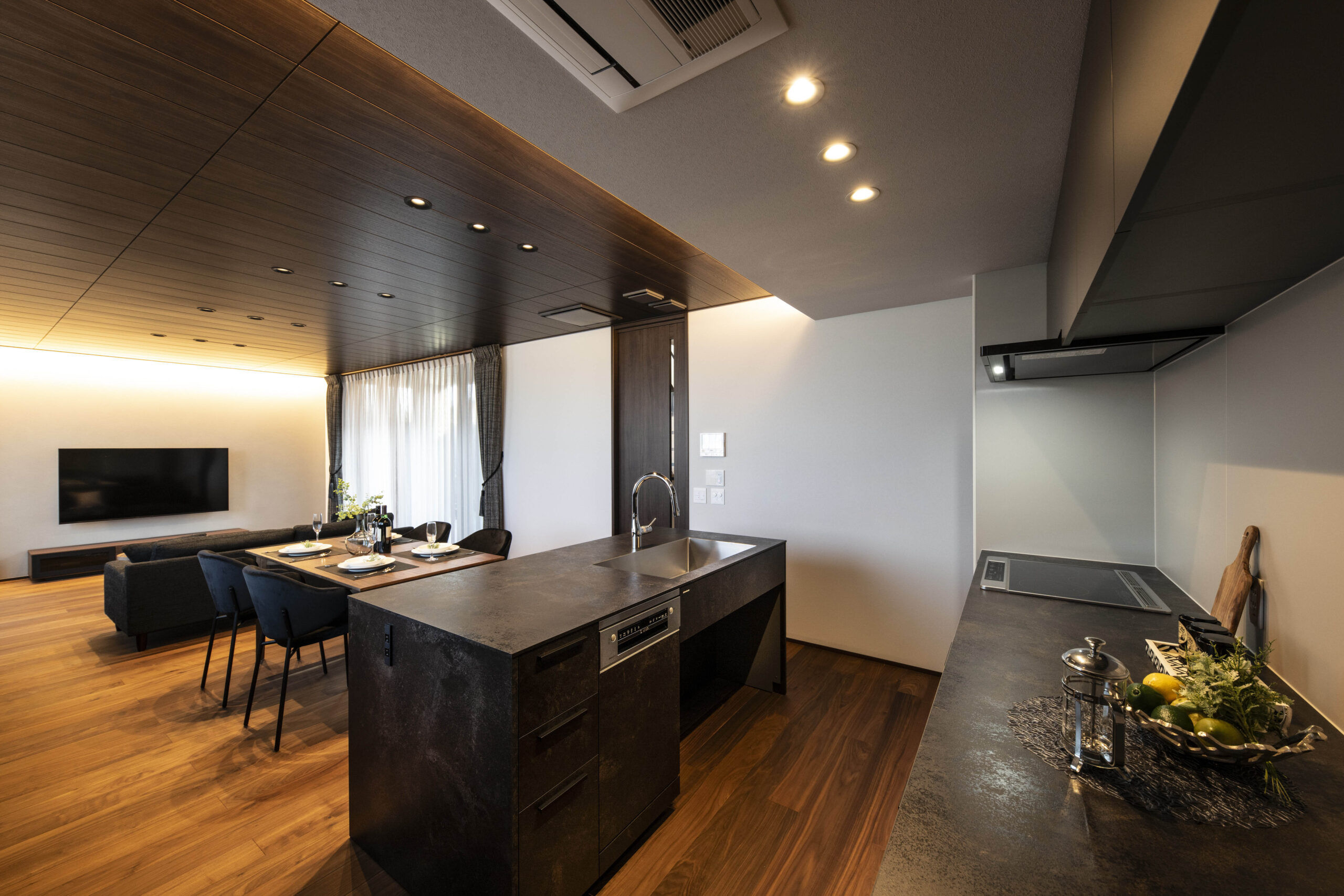 オープンタイプのキッチンでありながら調理中の匂いや油跳ねが気になる方にもお勧めのレイアウトです。