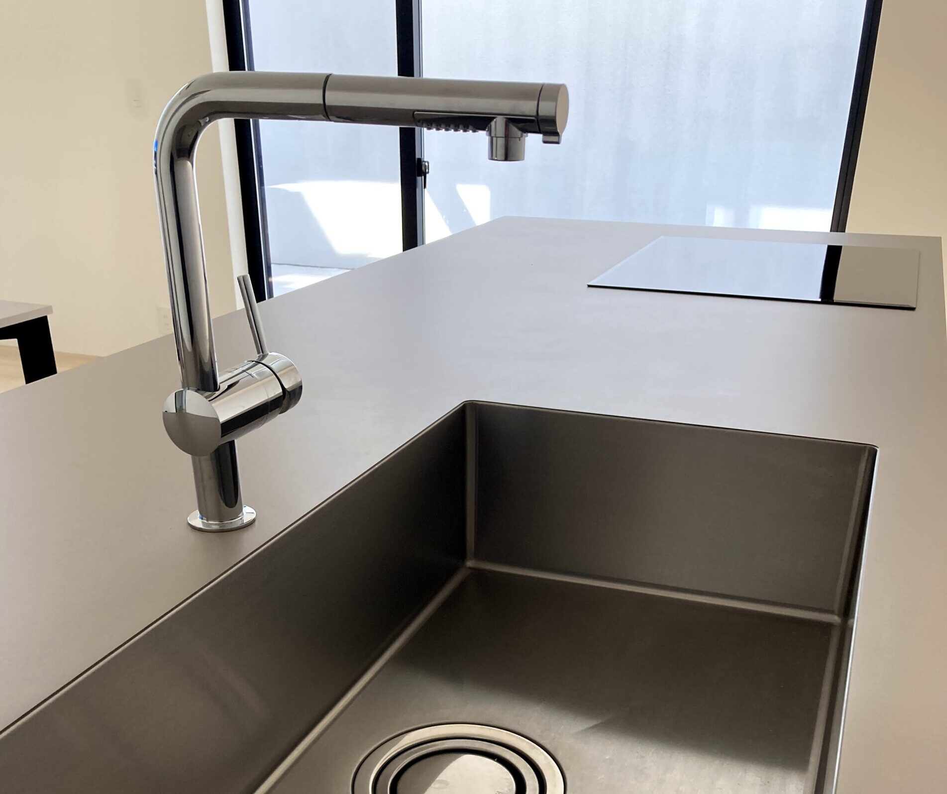 シンクはノーマルシンクを採用し、デッキのないフラット仕上げに。