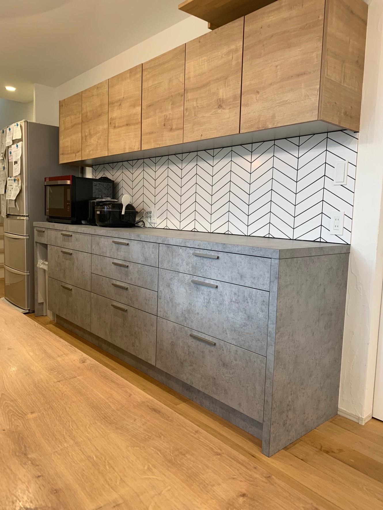 数年後、家事スペースとして使用していたオープンスペースに引き出しを新設し、収納スペースとして活用できるようリフォームいたしました。
