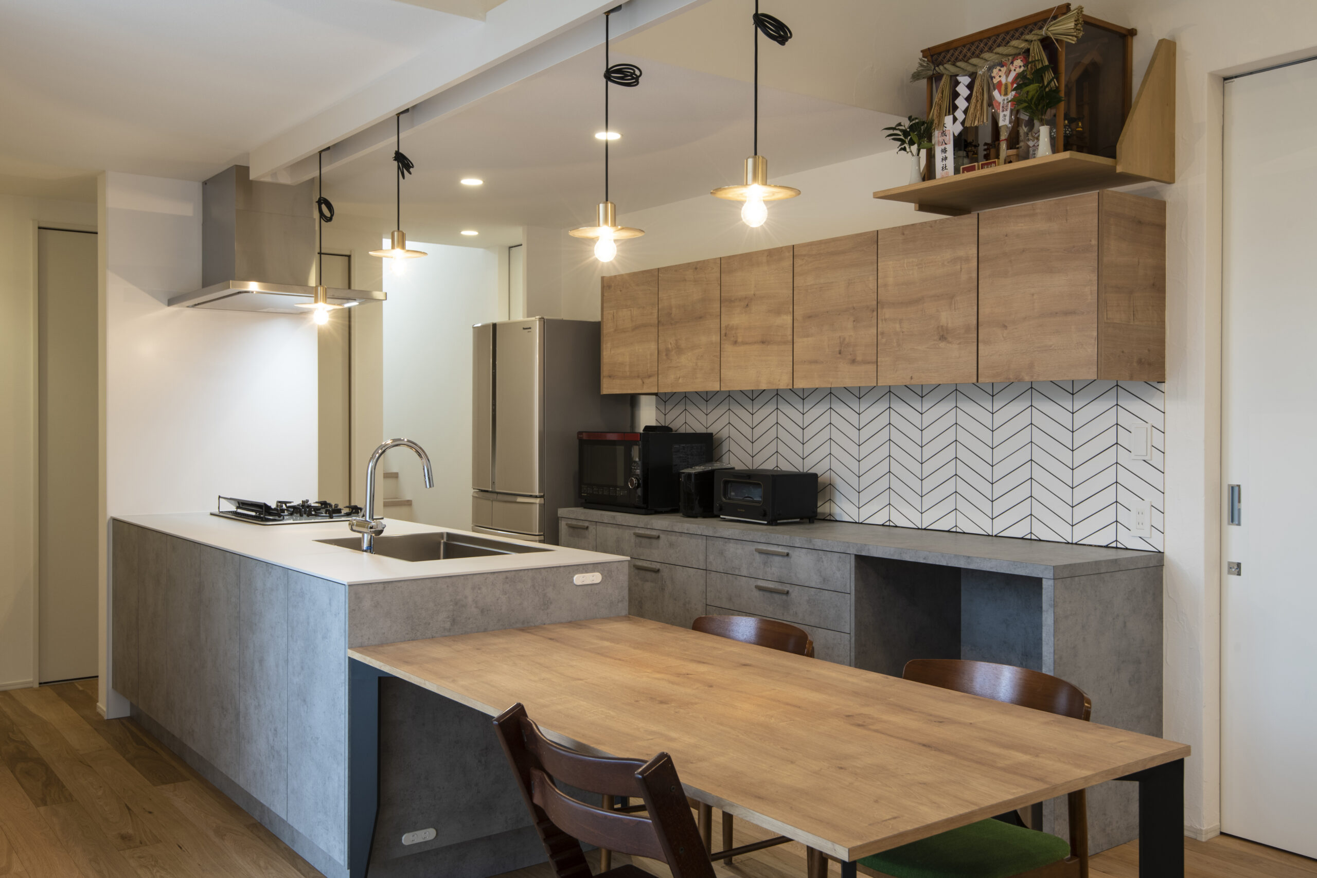 デザイン性・個性・機能性の三拍子がそろったこのキッチンは、こだわりを形にした“オンリーワンのキッチン”。大変ご満足いただける仕上がりとなりました。